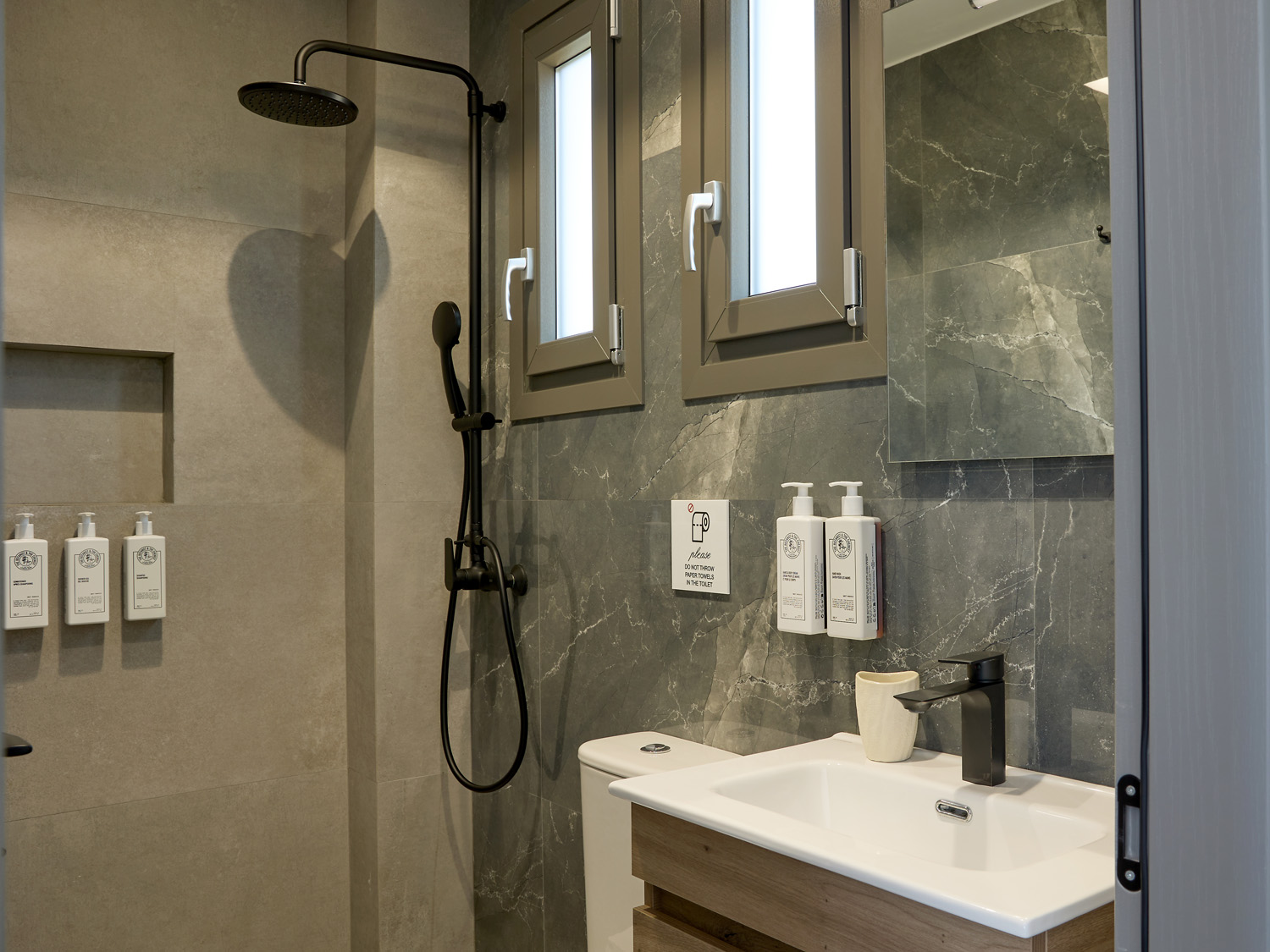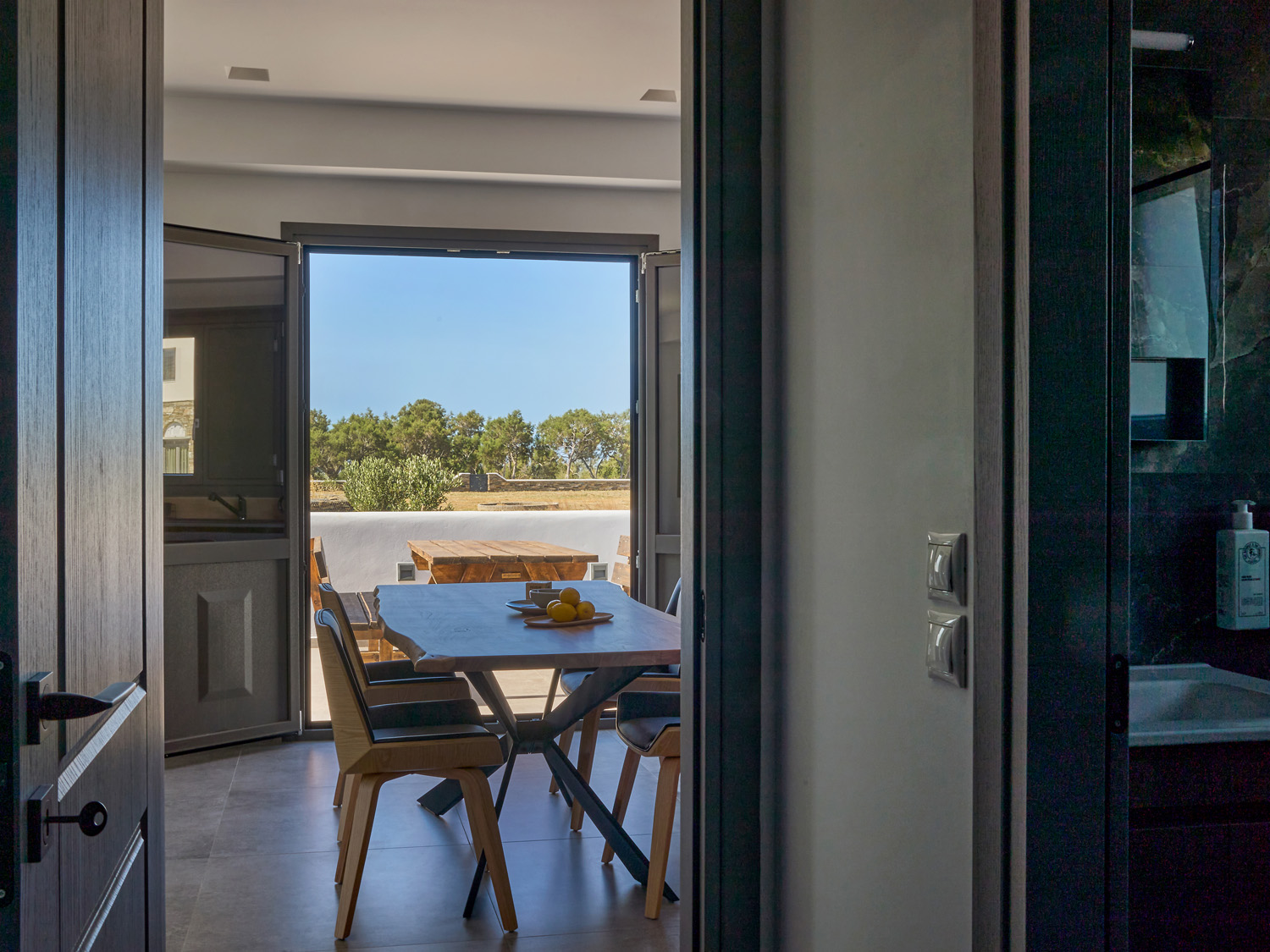 The 87 square meters of this maisonette are not just ideal for a family or a group of up to 6 people. It is proof of how Cycladic light, in the right conditions, becomes an organic element of the space.